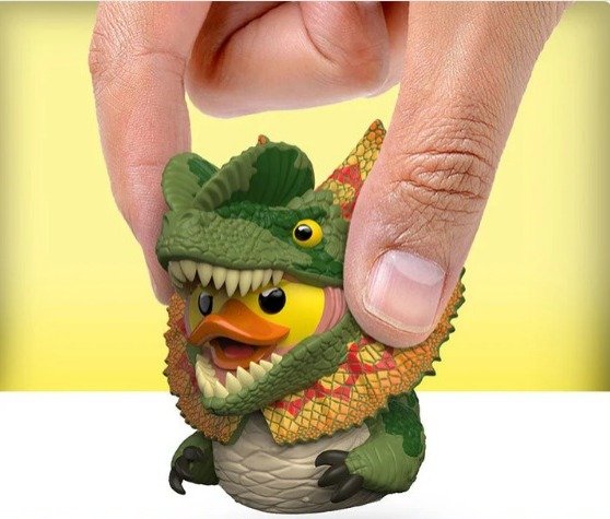 Clever, colorful, and packed with prehistoric mischief! The Dilophosaurus Mini TUBBZ toy has arrived to spit attitude into your Jurassic Park collection. Featuring its signature frill, bold patterns, and unmistakable Jurassic flair, this fierce-yet-adorable dino-duck hybrid is a real showstopper!