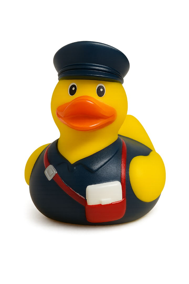 “Postman Duck is the cheerful messenger of the pond, always waddling from nest to nest with a satchel full of letters and packages. With his little cap and endless dedication, he makes sure every delivery reaches the right feathered friend on time. Rain or shine, Postman Duck spreads joy, news, and surprises with every flap of his wings