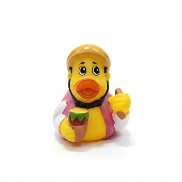 Walk down the aisle with this stunning Bride Duck! She is beautifully detailed with a white wedding gown, a delicate pearl necklace, and a white tiara nestled in her black hair. Carrying a vibrant bouquet of red roses and a celebratory glass, she is the perfect match for our Groom duck Raafat. Ideal for bridal showers, wedding favors, or as a unique cake topper.